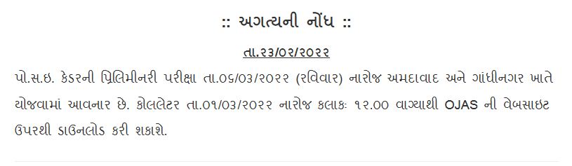 Note : Gujarat Police PSI Preliminary Written examination of all the candidates who have passed the physical test of the cadre has been organized on 06/03/2022 (Sunday). Detailed instructions regarding Preliminary Examination are now available at P.S.E. The recruitment will be posted on the Board’s website.