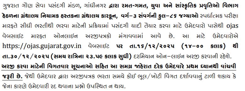 - Library Clerk Official Notification PDF (Advt. 342/2025-26) Click Here (Refer to the official GSSSB/OJAS website)